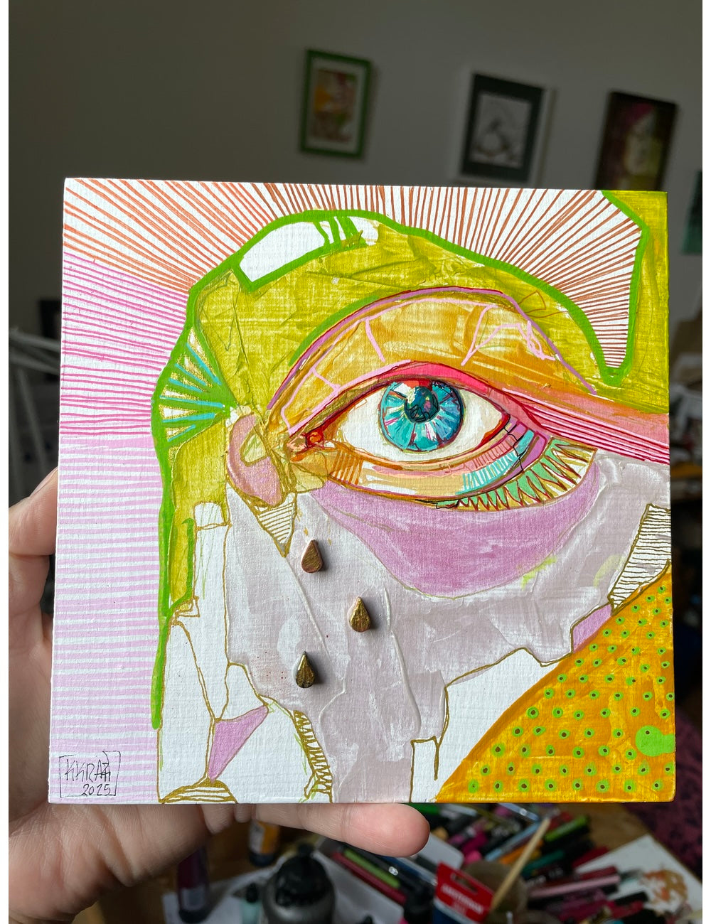 Original artwork on wood. “Tapadä XXIV” framed 20x20cm